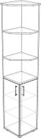 Шкаф идеально подходит для завершения модельного ряда как с левой так и с правой стороны. В верхней части шкафа находится секция с полками, в нижней полки за закрытыми фасадами. Может быть использован как дополнительный модуль ПР-7 или как самостоятельное изделие.
