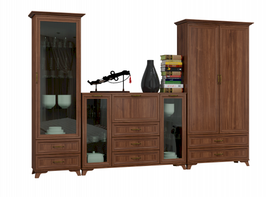 Изделие даёт возможность спрятать за закрытыми дверцами посуду, столовый текстиль, книги и другие вещи. Это позволяет комфортно и функционально организовать пространство вашей гостиной комнаты.